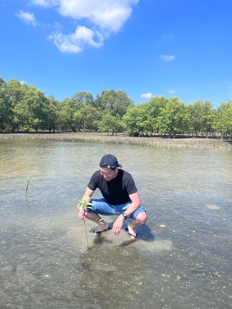 ”現在はマングローブ植林でのボランタリークレジットを開発。インドネシアでのマングローブ苗の植林の一枚